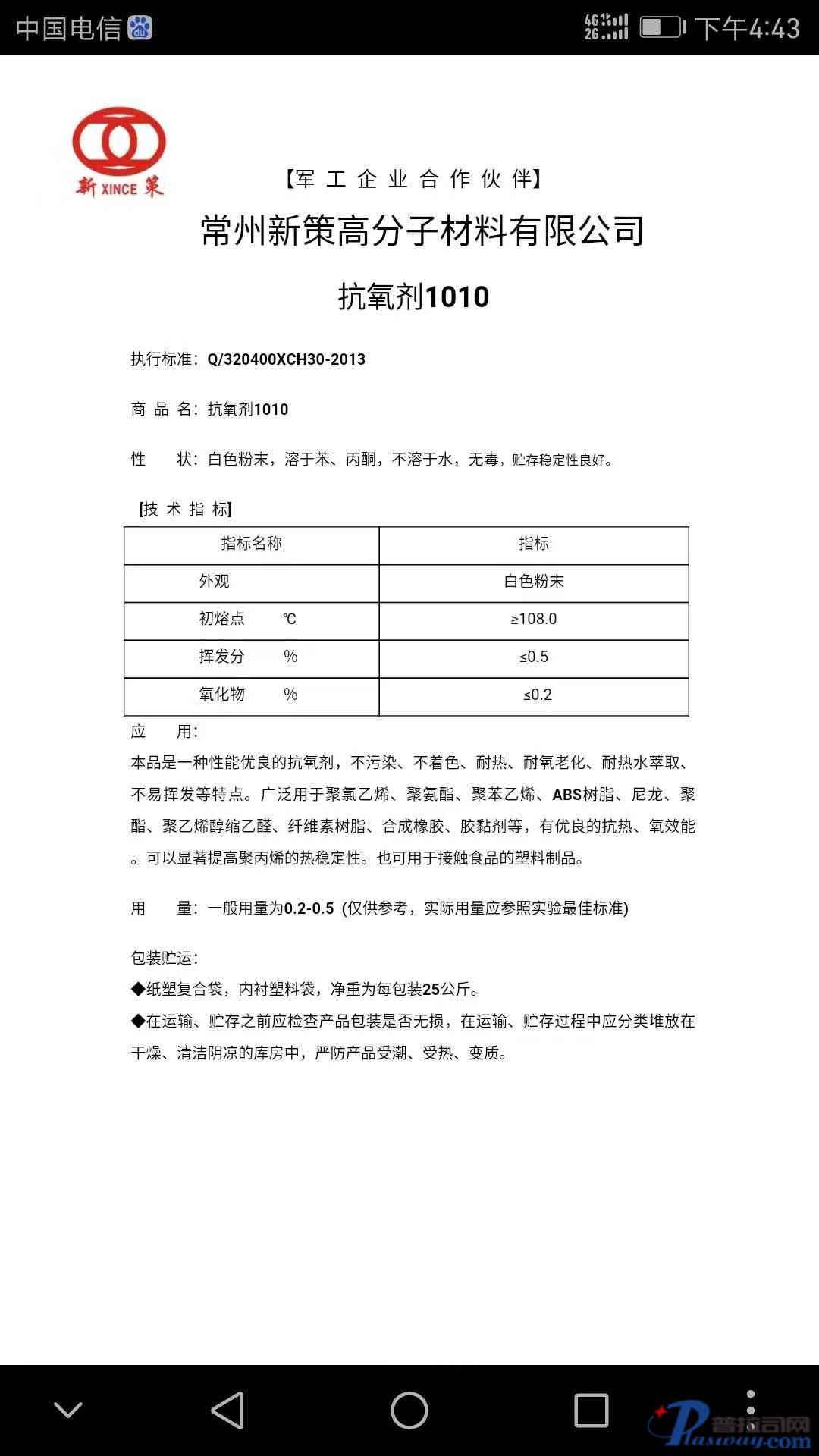 抗氧化剂/常州新策高分子/1010/高效抗氧老化