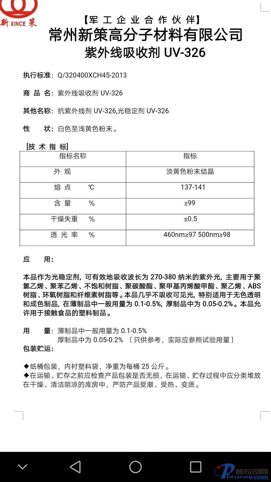 紫外光吸收剂/常州新策高分子/UV-326/高效吸收紫外线
