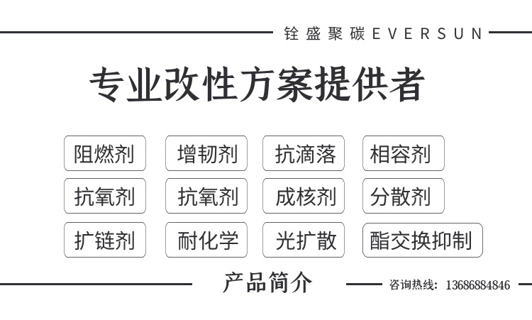 应用领域:PC、PC+GF、PC/ABS、PC/PBT、PC/PET