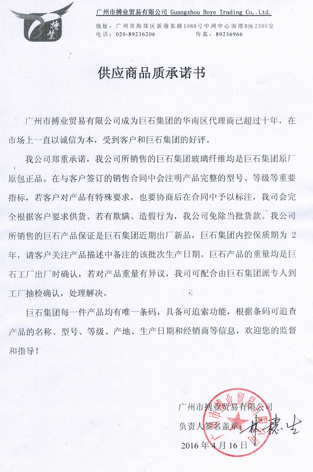 广州市搏业贸易有限公司成立于2004年,地处中国最活跃的"珠三角经济商圈"的地理中心,以独特的区位优势,深得中国经济发展先机。公司专业致力于工程塑料及复合材料行业的技术服务型原料供应商。公司以技术服务为品牌优势,业务立足珠三角,面向整个华南地区。短短六年时间,公司的产品以服务上乘,价格合理,品种齐全,质量优异,供货稳定而深得广大客户的肯定。公司以年销售额超8000万,服务客户近500家,一跃成为华南地区玻纤行业首屈一指的经销商。