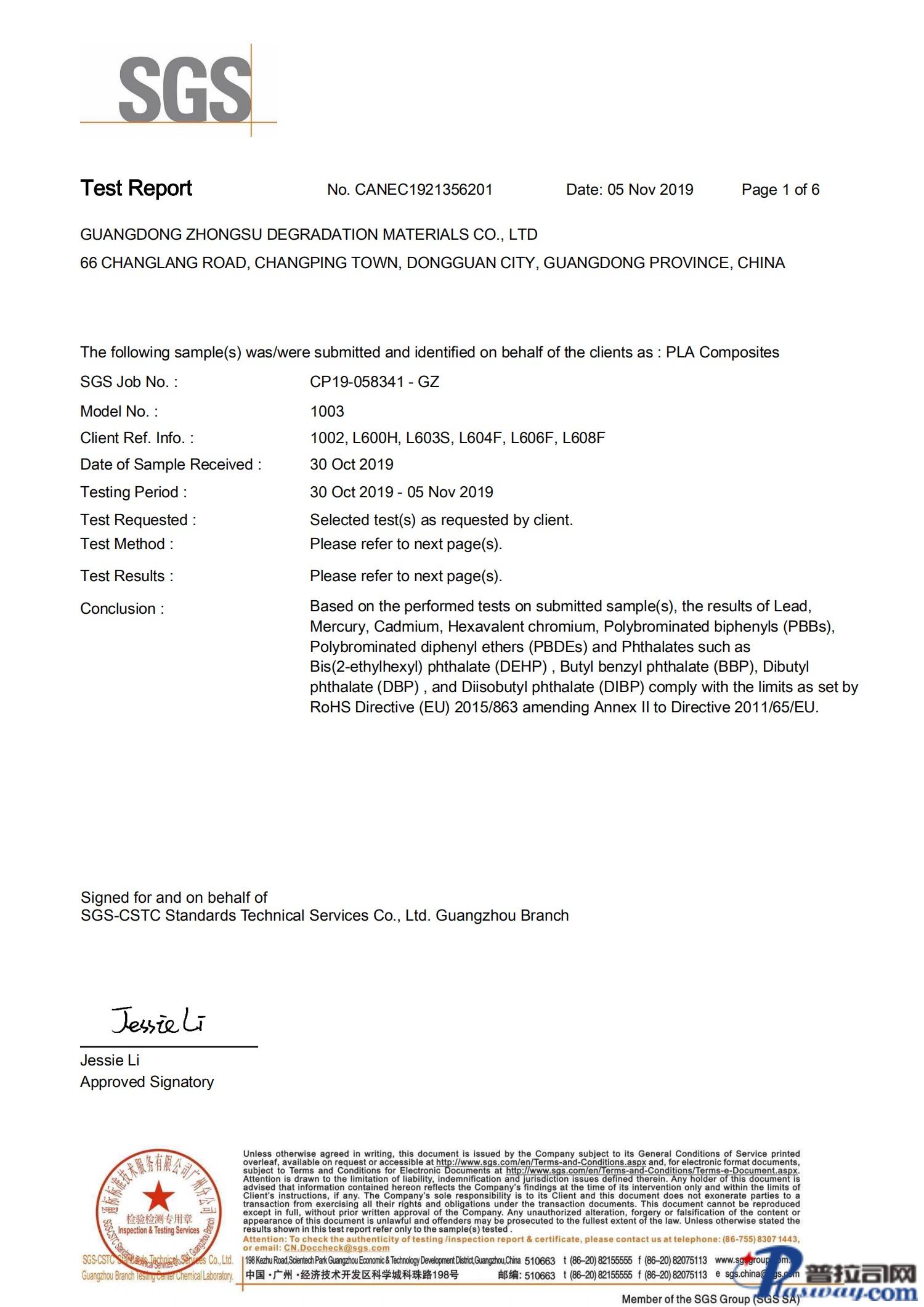 PLA 广东众塑降解 L600H 耐热级