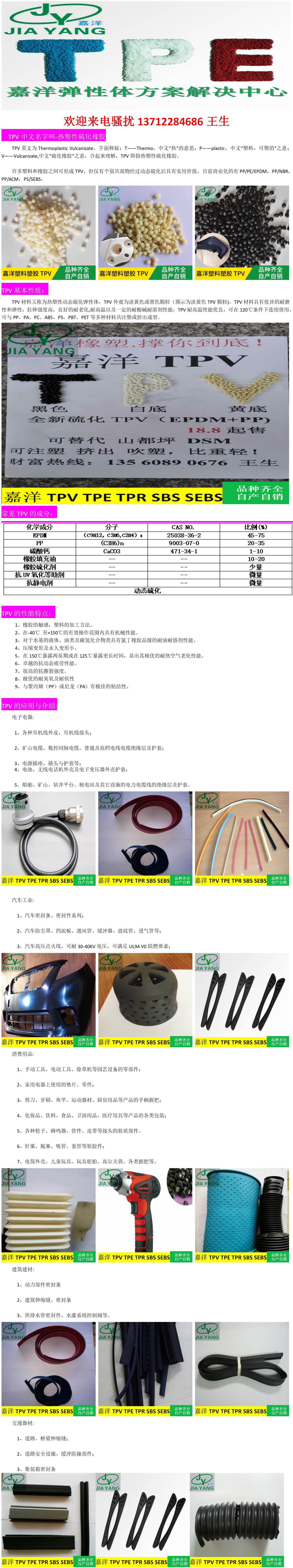 TPO东莞嘉洋 JY-O601 嘉洋挤出级,注塑级,吹塑级TPV耐高温,耐老化,耐酸碱,