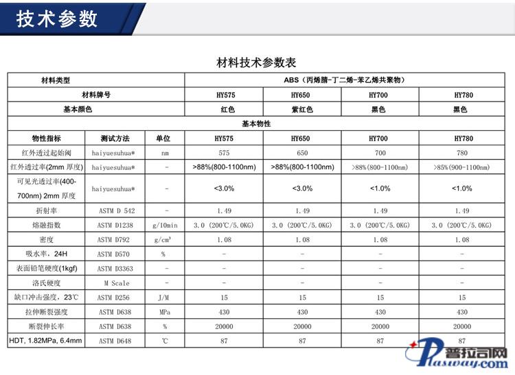 ABS东莞海越塑化 HY700-SL ABS 红外线穿透 蓝光
