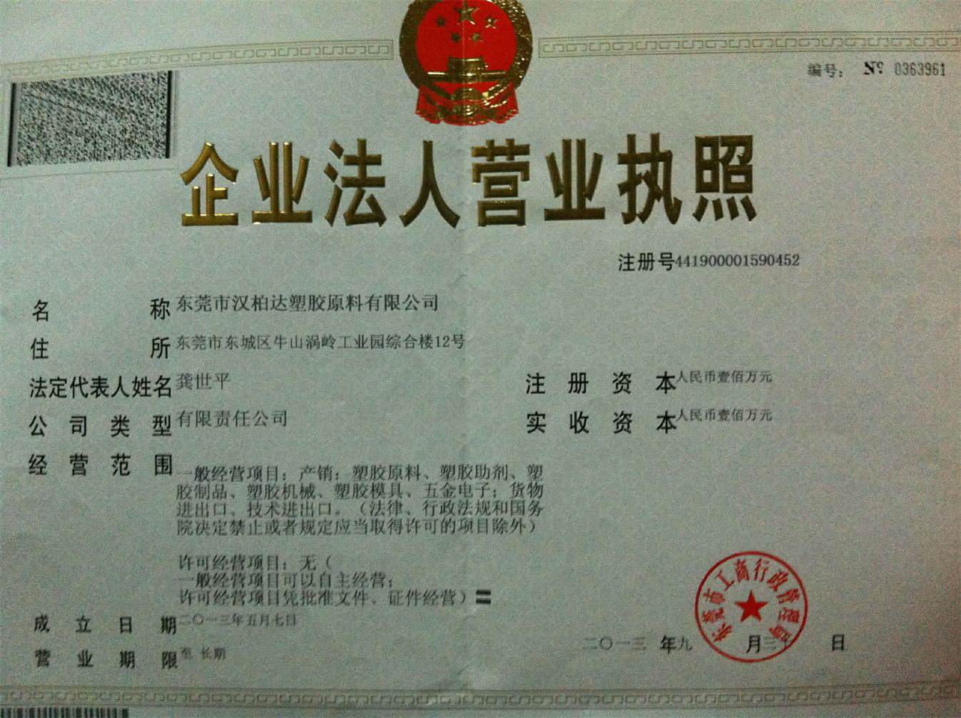 汉柏达(汉柏伦)塑胶原料有限公司有十几年生产销售塑胶原料经验,总部设在广东省东莞市东城区,在广东省东莞市常平镇大京九塑胶城京九大道D25-26号/塑通六路640设有门市/佛山市杏坛镇光华工业区德彦大道南东横路2号。销售门市经营品牌新料,目前主要代理各种品牌新料PBT,PA.长春/南亚/新光改性PBT,南亚改性尼龙,都为厂家直接进柜,市场没有型号可根据客户需求预定进货,公司以“诚信经营,实现共赢”为宗旨,品牌新料保证原厂原包,假一罚十。一定数量门市可提货,大货仓库距公司近(塑通八路旁)。(有一定用量或代客户进货价格可以再商议),如果新料没有的品种和价位要求,自有工厂可以为您定做,满足客户朋友们对PBT的全方位要求。