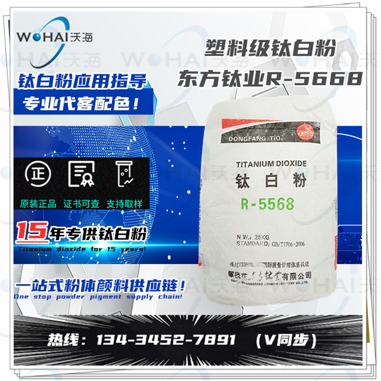东方钛业R-5568钛白粉用锌盐稳定剂,锆、铝、硅包膜。具有蓝相高、易分散、高耐候性、高遮盖力、低吸油量、良好体系相容性、优异加工流变性等特性,是高品质塑料专用钛白粉。东方钛业R-5568钛白粉推荐广泛用于聚烯烃、PVC、ABS、PS等色母粒、型材、板材、管材中,也可用于制皮革色浆、油性涂料等行业。