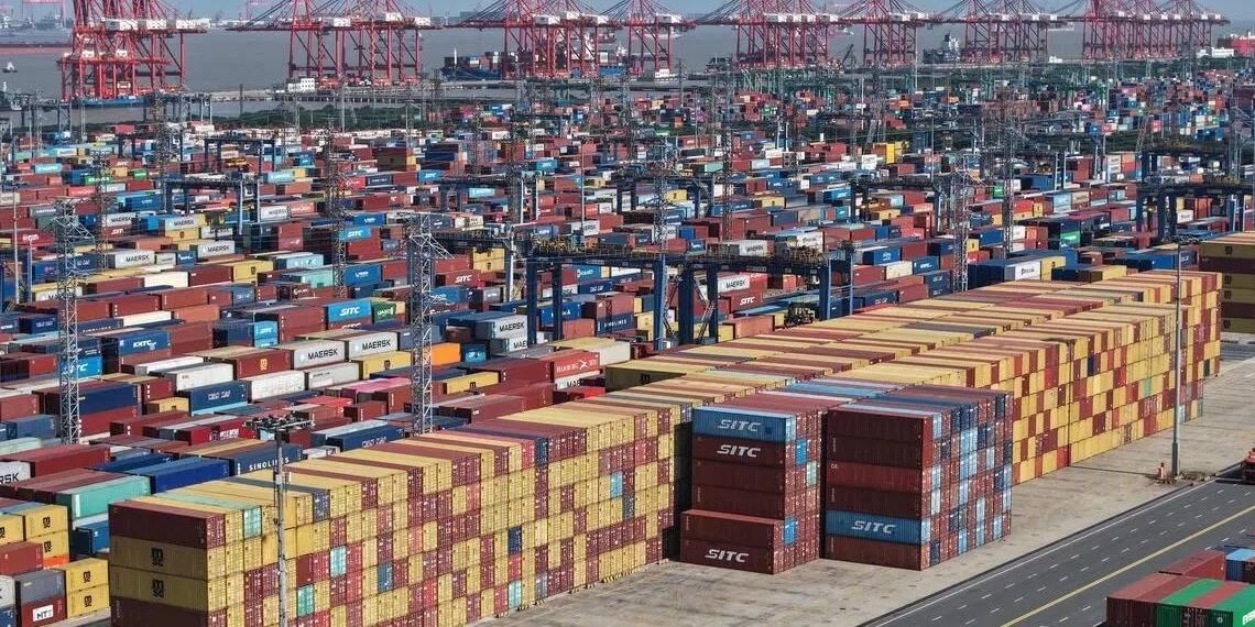 时事政策中国2025年出口增长6.1%,进口增长0.5%。图为上海港集装箱码头。 (法新社)