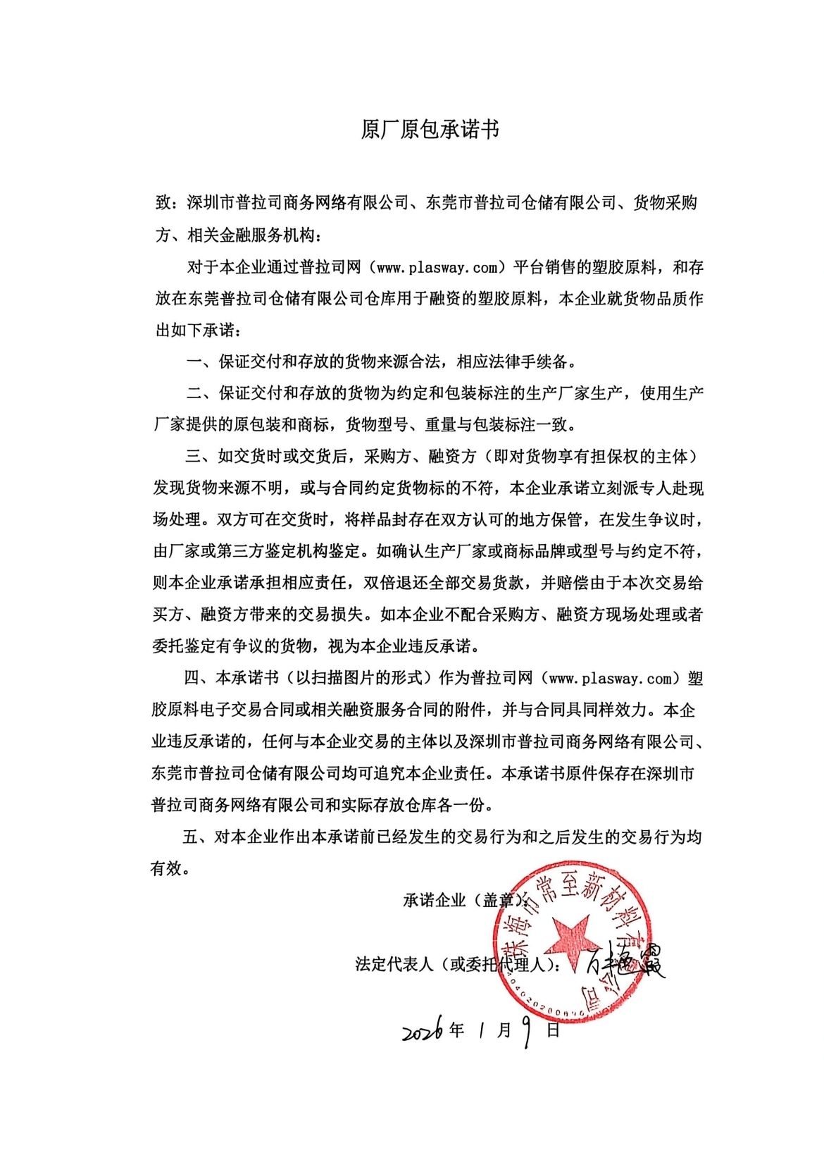 原厂原包承诺书