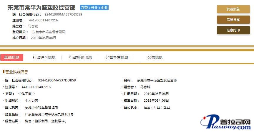 企业在主管机关网上注册信息截图