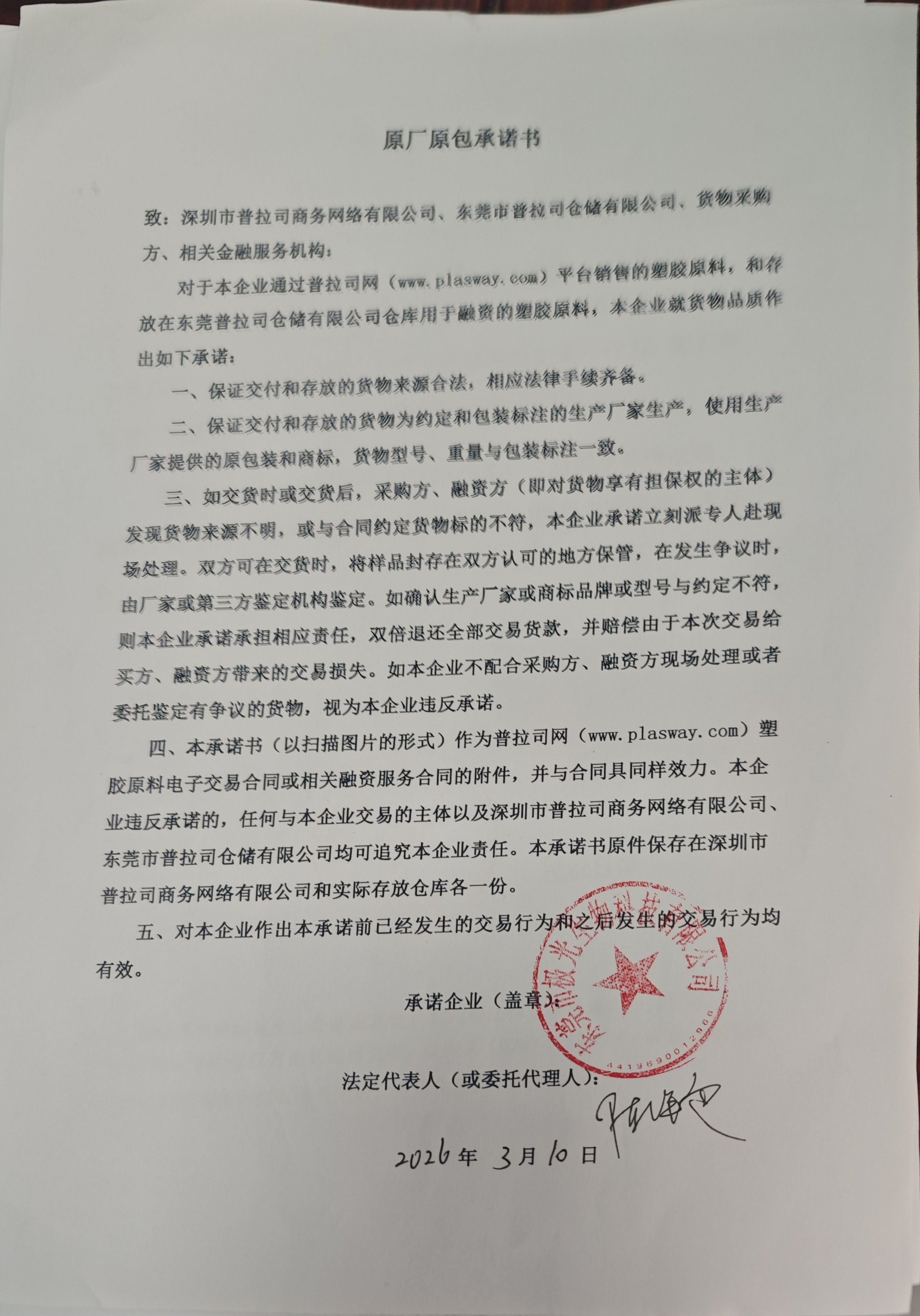 原厂原包承诺书
