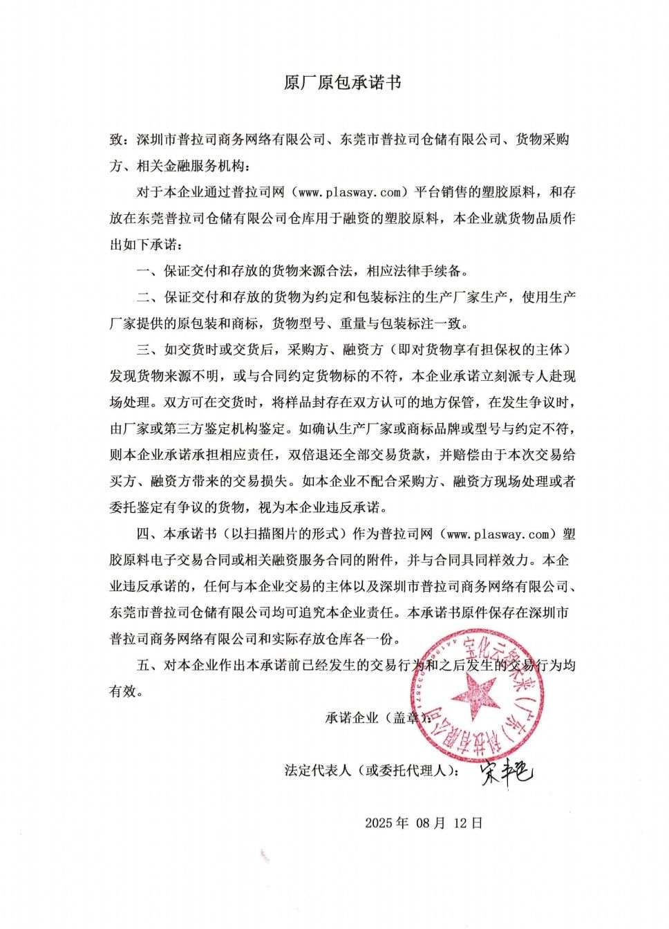 原厂原包承诺书