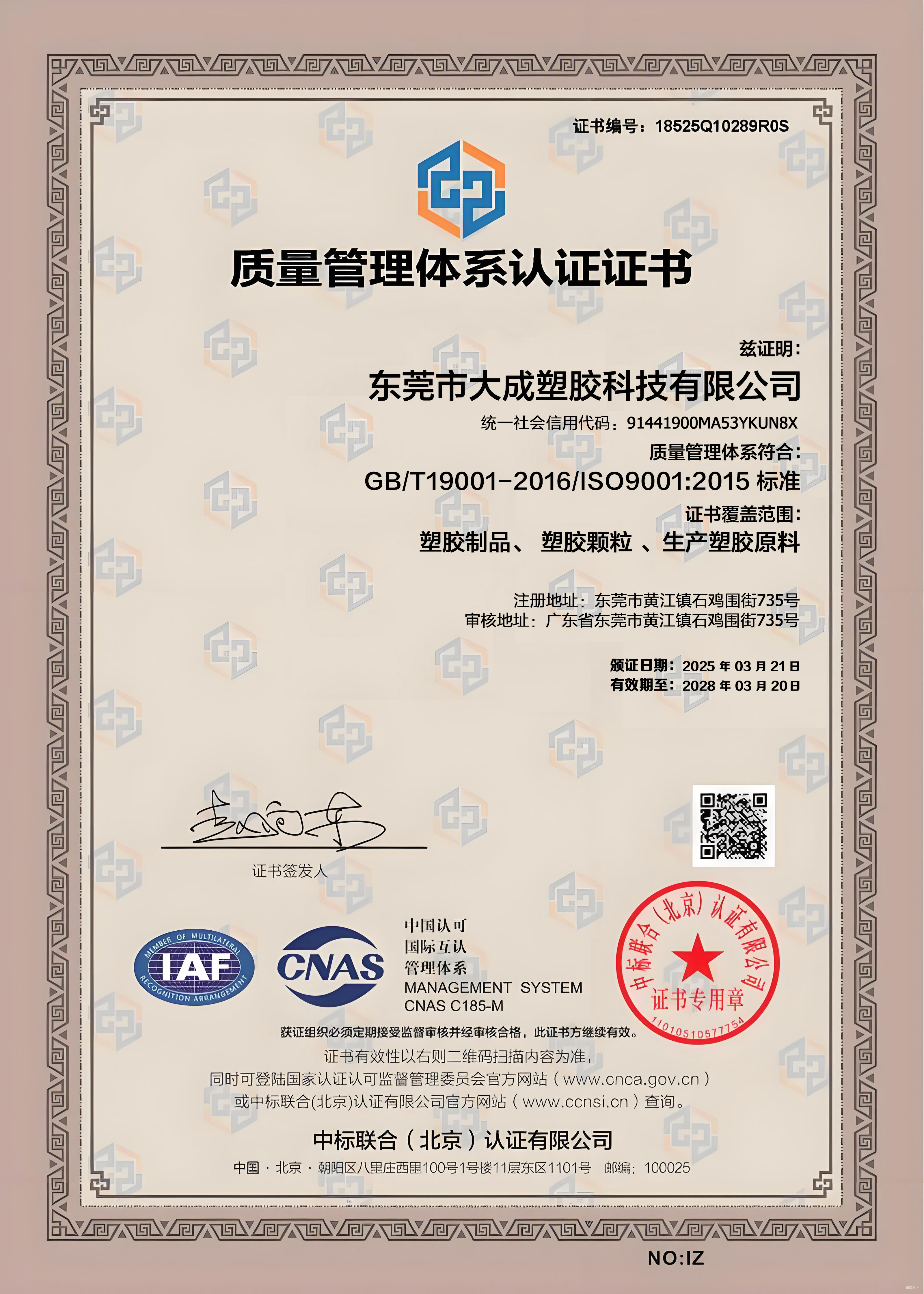 东莞市大成塑胶科技有限公司(原三鑫PP)是一家及研发设计、生产制造、技术服务为一体的改性塑料颗粒生产及定制厂家。公司拥有阻燃,增强阻燃,遮光阻燃,玻纤增强和功能改性等五大系列,30多个品种120多个牌号的产品。所有的产品均通过CQC质量管理体系认证,符合欧盟ROSH标准,为家电、汽车、医疗、新能源,电子电器,灯饰照明等领域,提供一站式塑料材料解决方案。