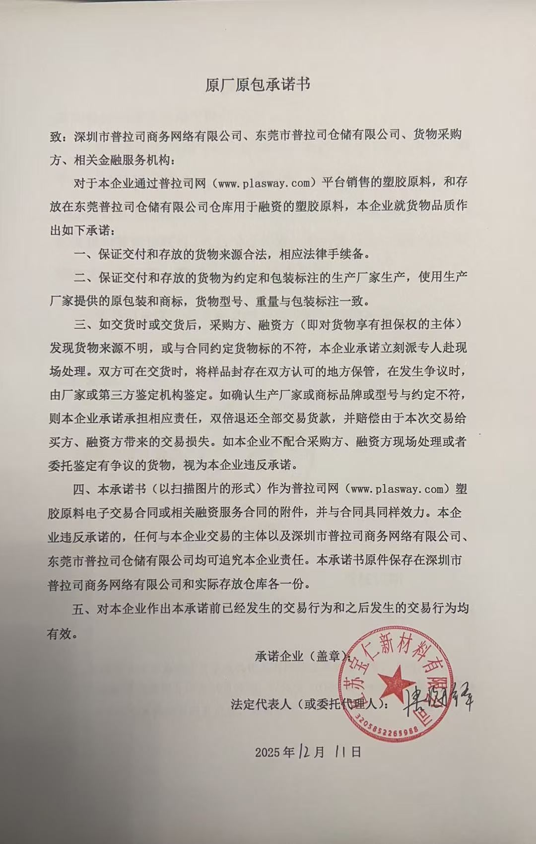 原厂原包承诺书