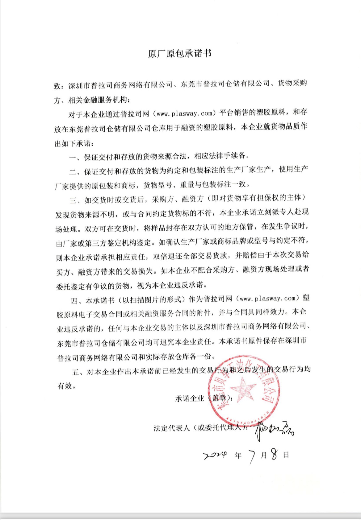 原厂原包承诺书