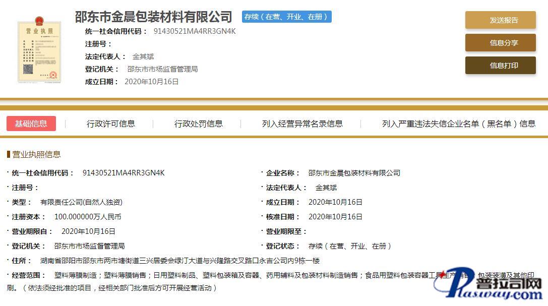 企业在主管机关网上注册信息截图