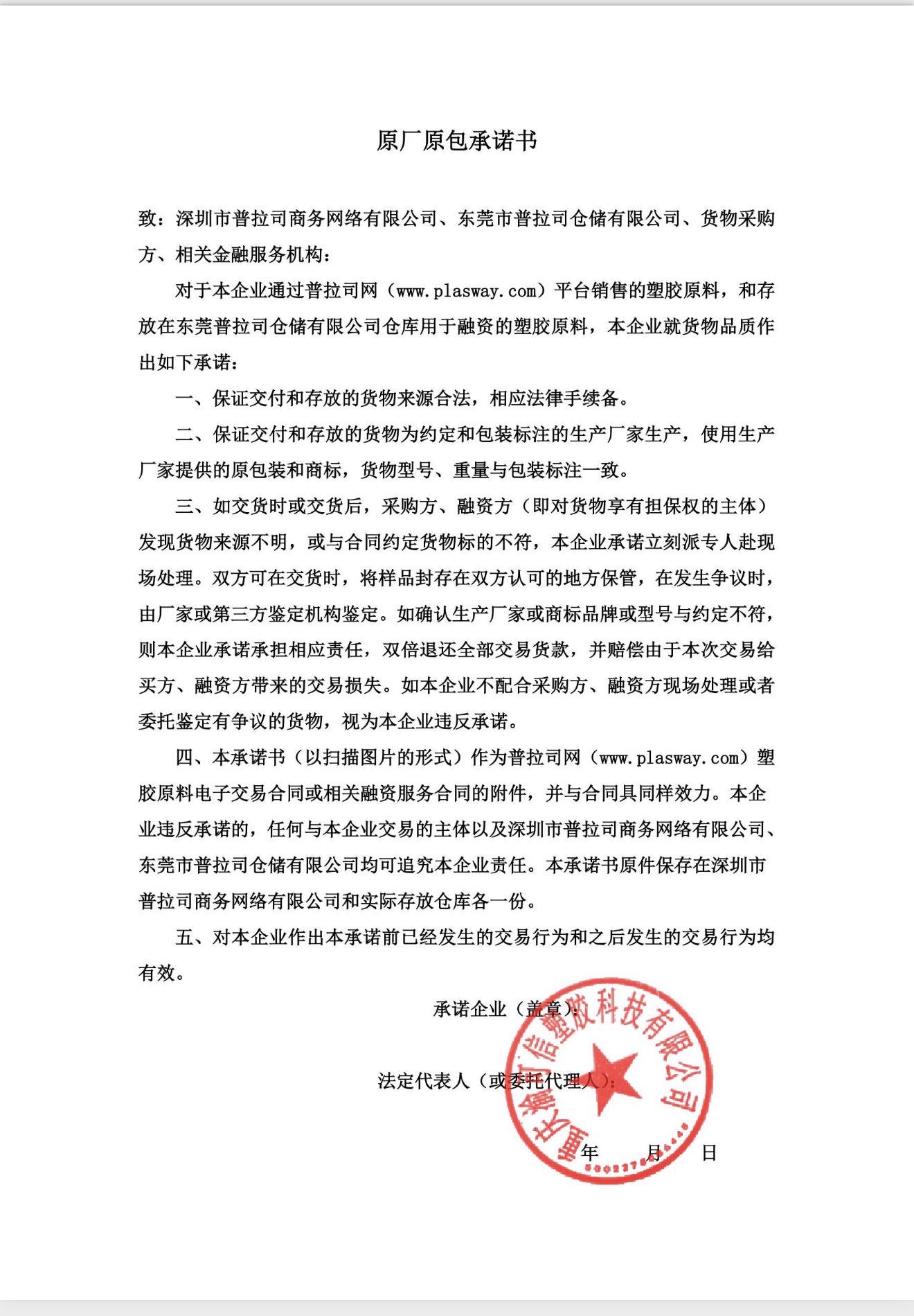 原厂原包承诺书