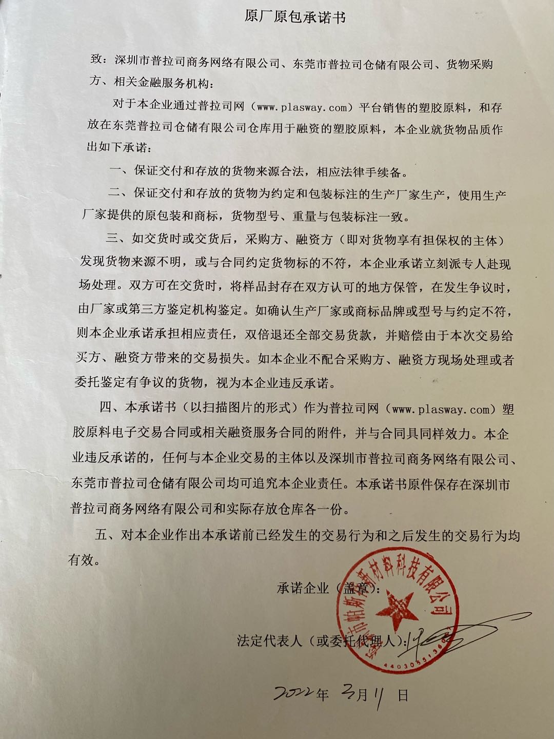 原厂原包承诺书