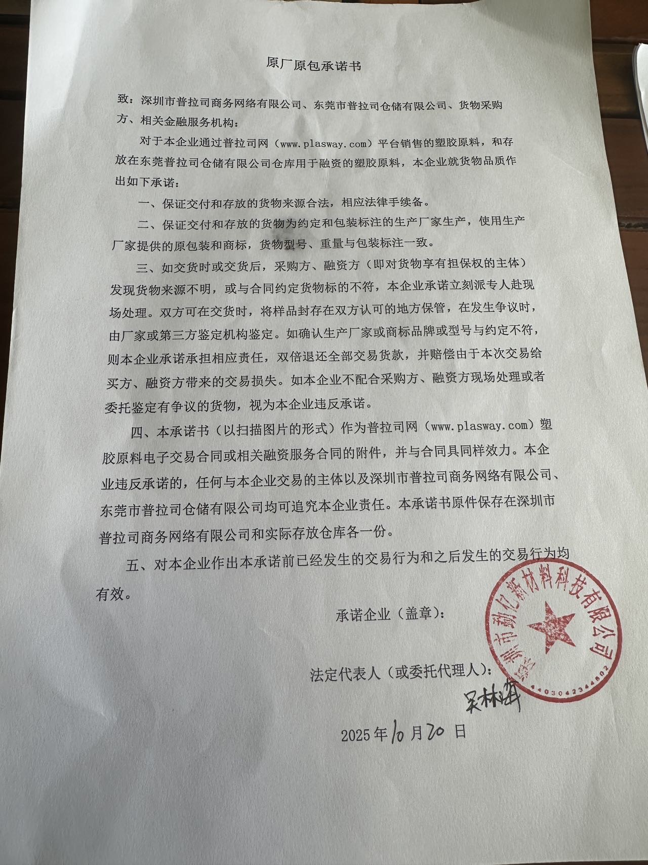 原厂原包承诺书