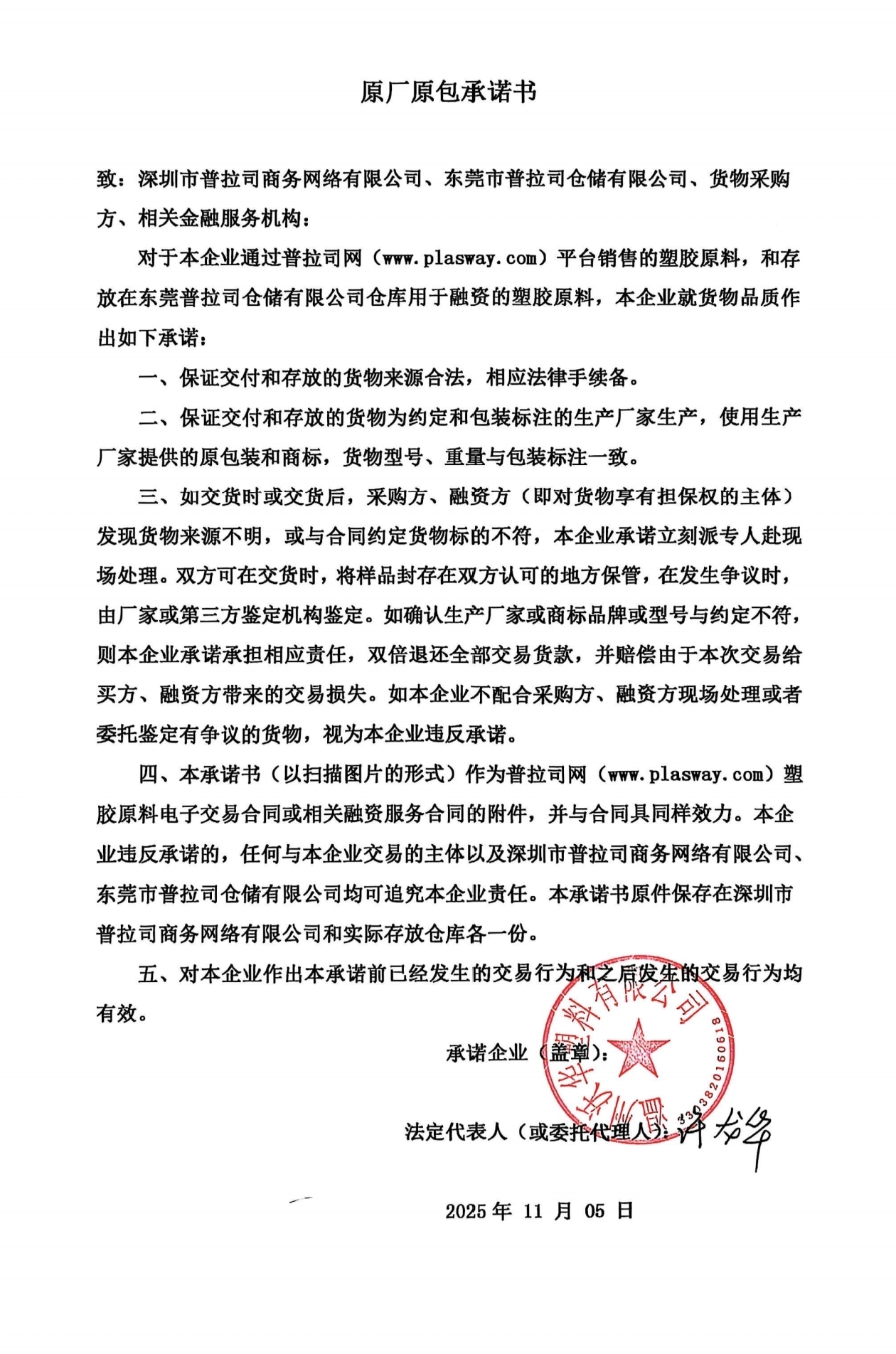原厂原包承诺书