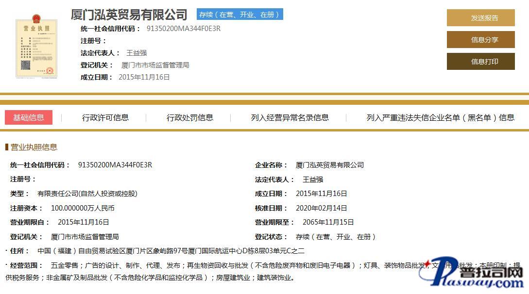 企业在主管机关网上注册信息截图