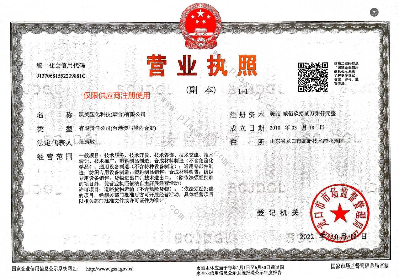 凯美塑化科技(烟台)有限公司,原公司为烟台华大纳米材料有限公司,始建于1993年,已有30余年的色母粒制造历史,拥有强大的技术团队和研发能力,一向以技术领先而得到市场的认可,产品主要应用领域为无纺布和地毯纤维等行业,产品销往海内外。多年来在这些领域里建立了良好的公司信誉,现由德国Keimei Plastifizierung Technik GmbH出资并购。这次成功并购后,原公司被注入了众多新的纳米制造技术,同时,使德国KEIMEI在亚洲拥有了偌大的生产基地,扩大了产量的同时更加贴近了客户,使服务更加便捷,技术支持更加高效。