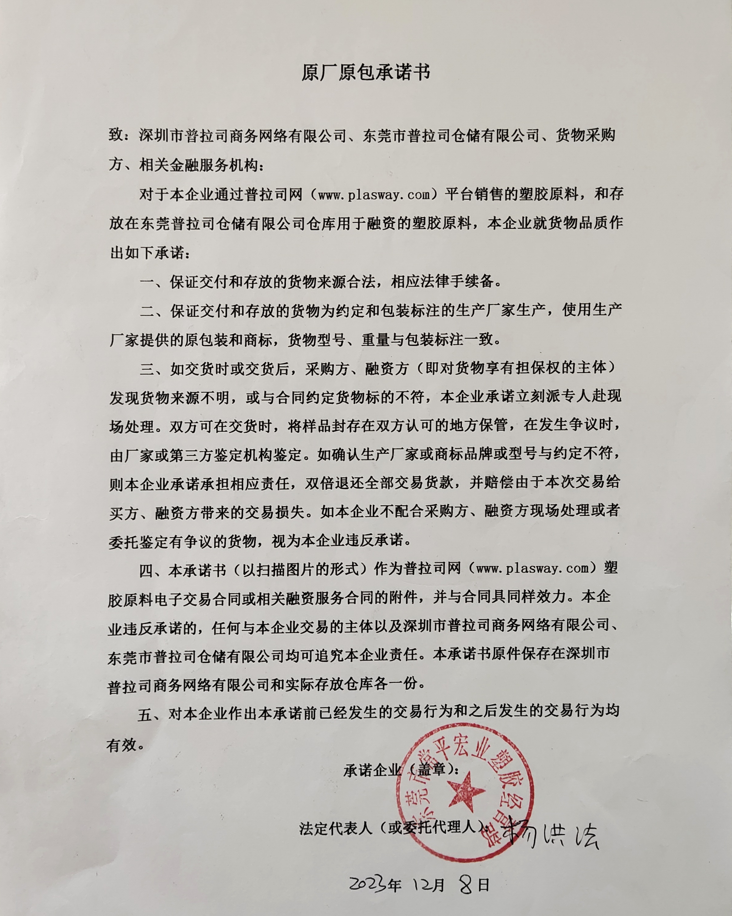 原厂原包承诺书