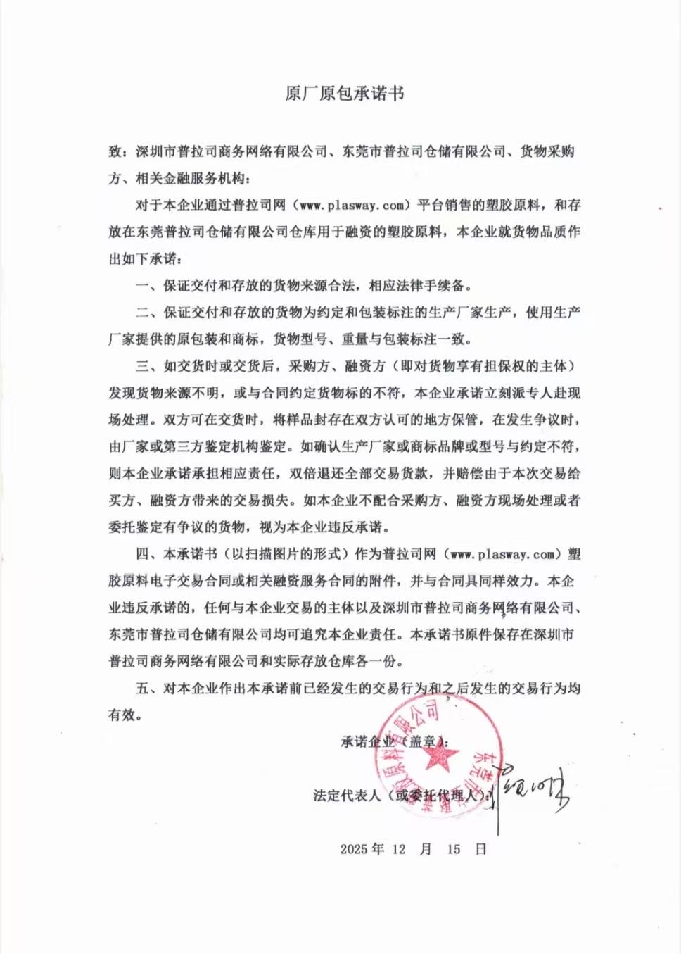 原厂原包承诺书