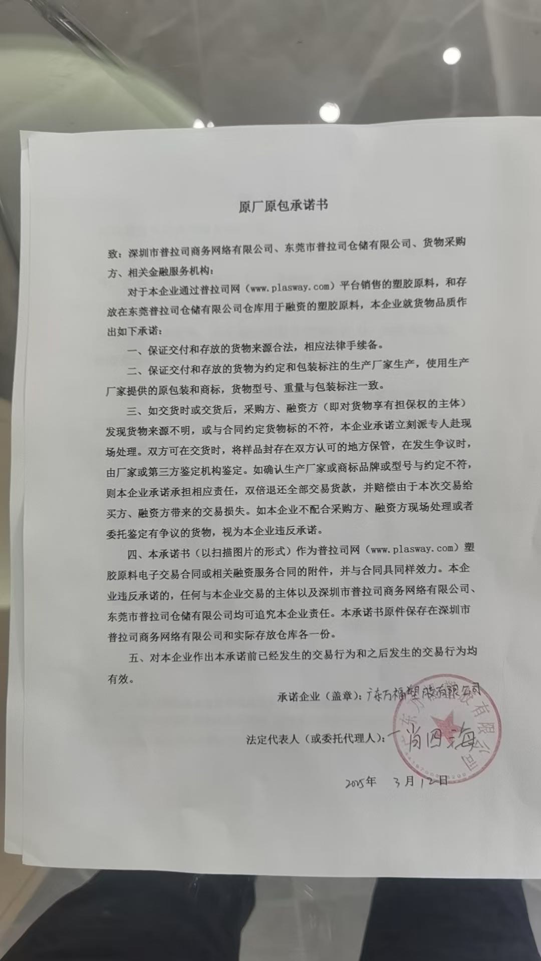 原厂原包承诺书