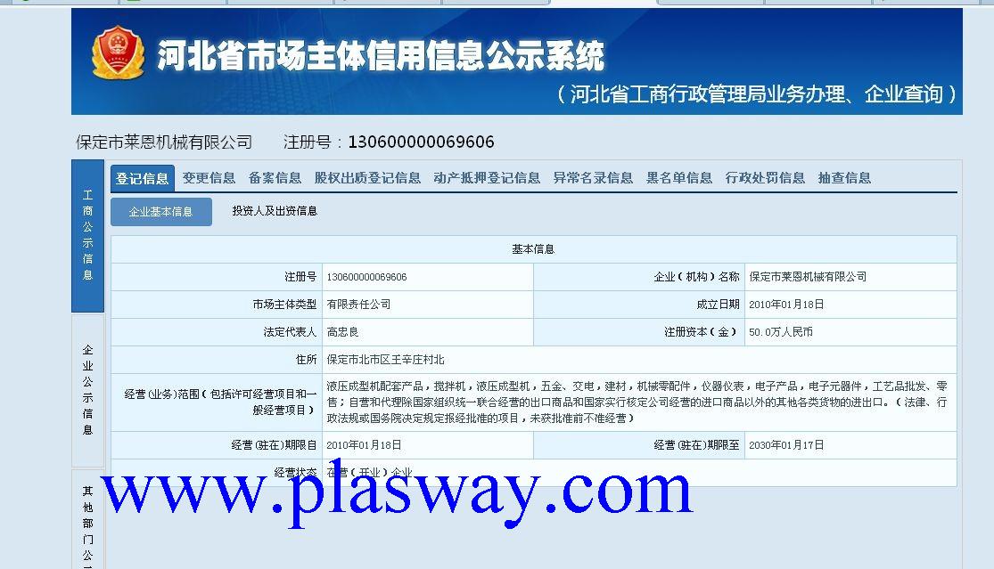 企业在主管机关网上注册信息截图
