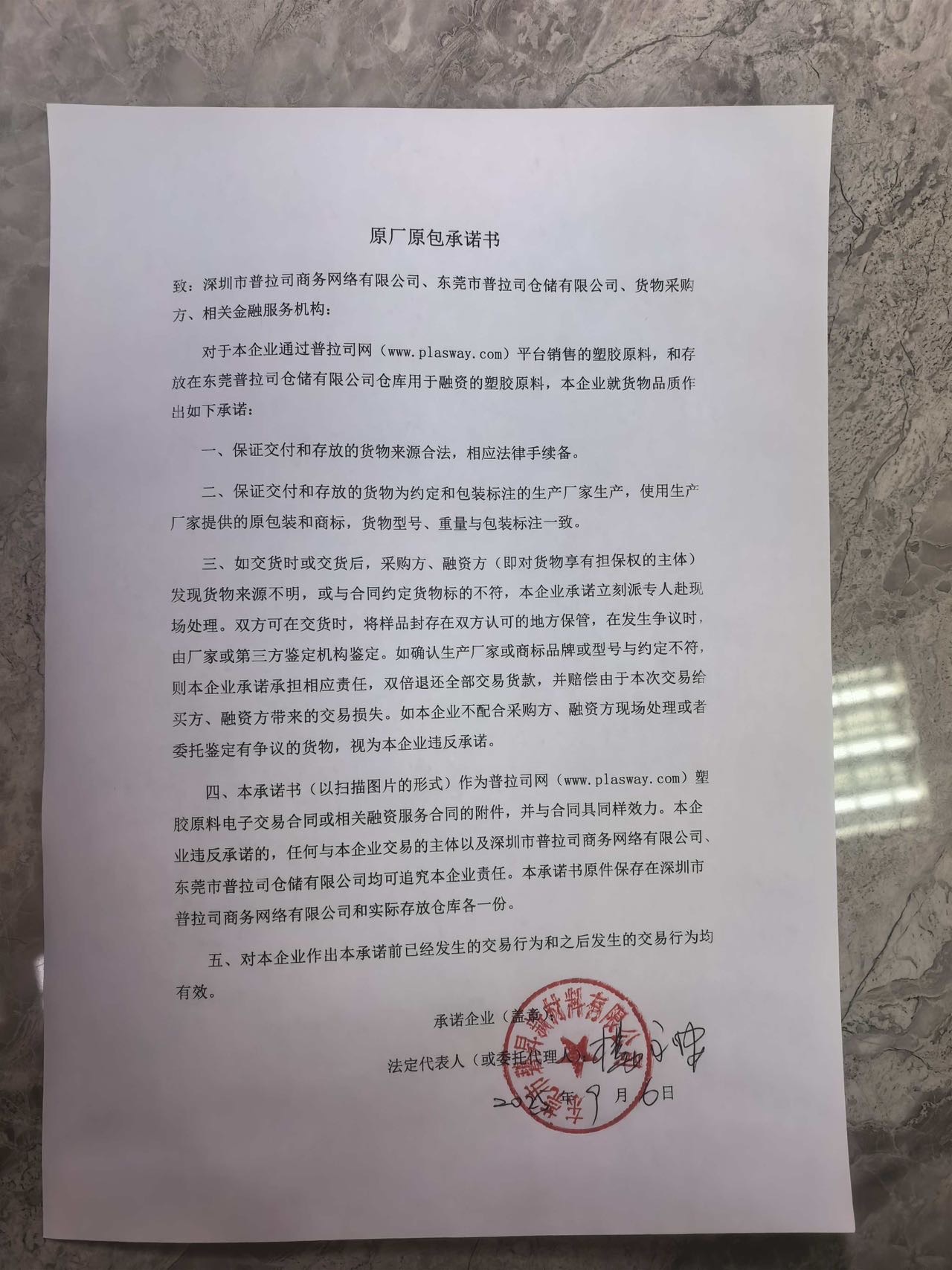 原厂原包承诺书