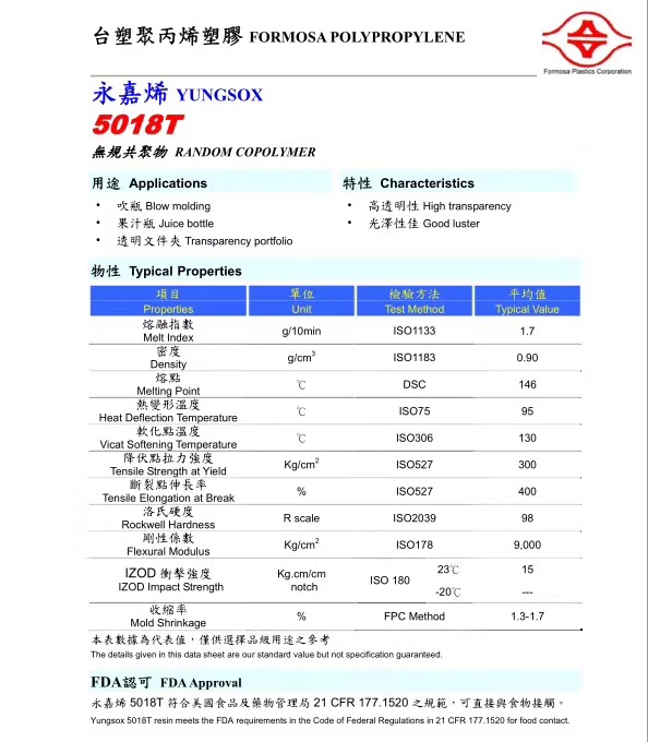 PP:台湾李长荣化工(福聚烯)PP系列:6331、6524(均聚/单聚福聚PP),7633、7633-3、7533、7233N(共聚抗冲福聚PP),ST868M、8681、8682(无规共聚/透明PP);