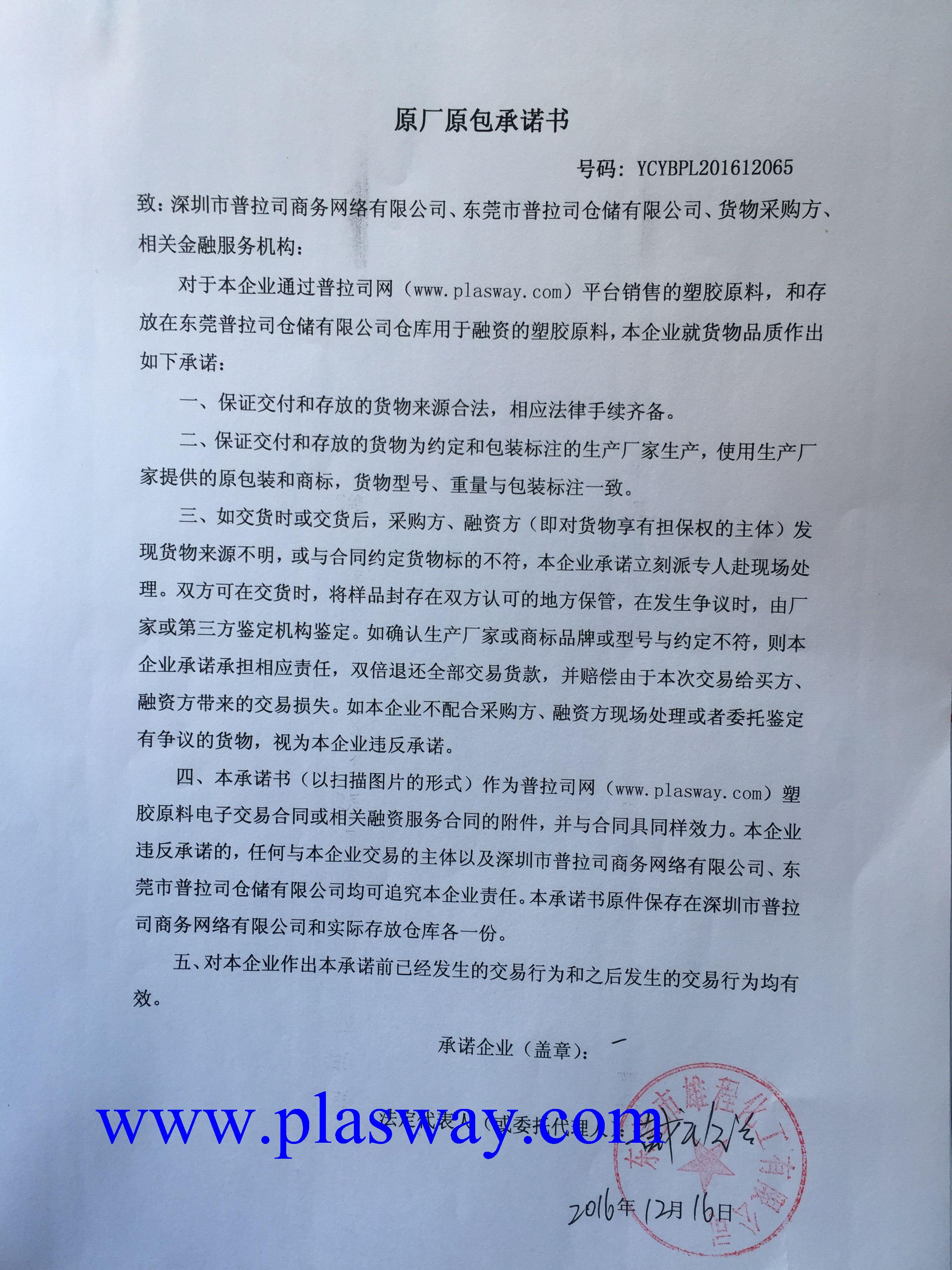 原厂原包承诺书