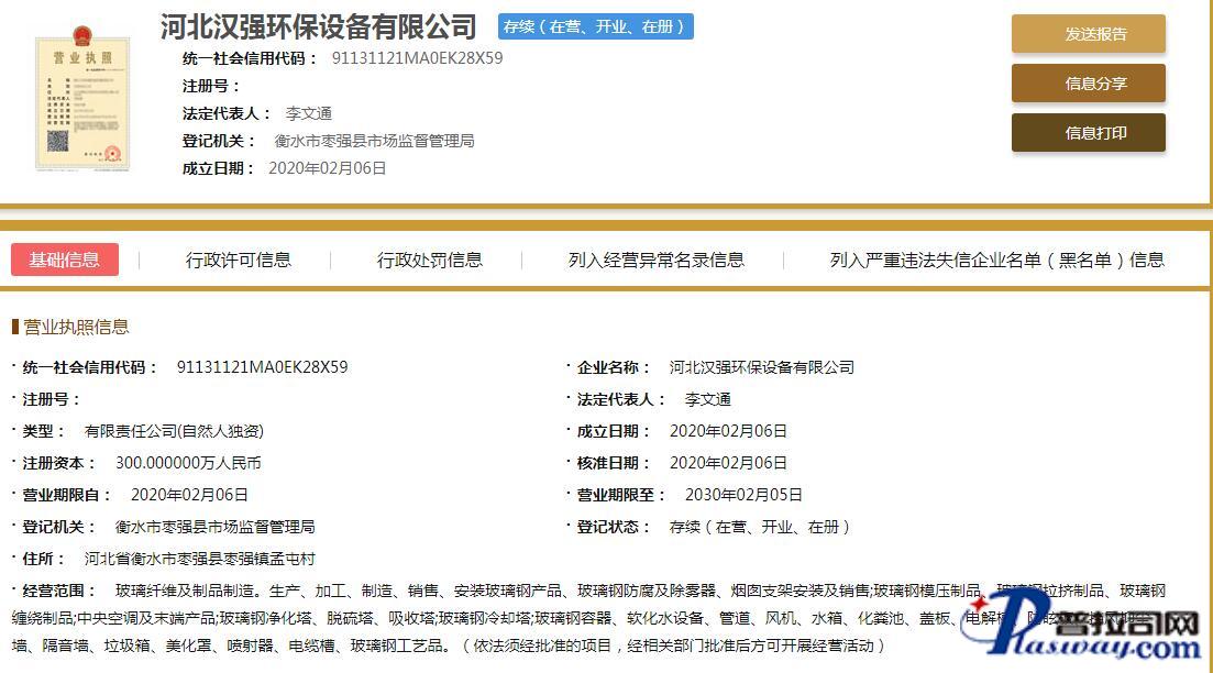 企业在主管机关网上注册信息截图