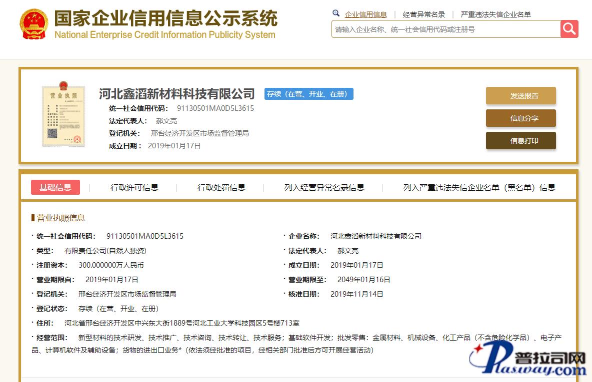企业在主管机关网上注册信息截图