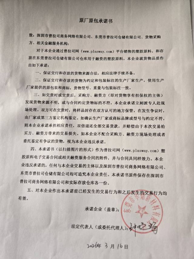 原厂原包承诺书