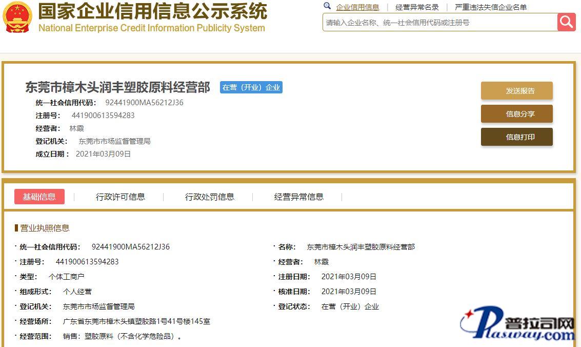 企业在主管机关网上注册信息截图