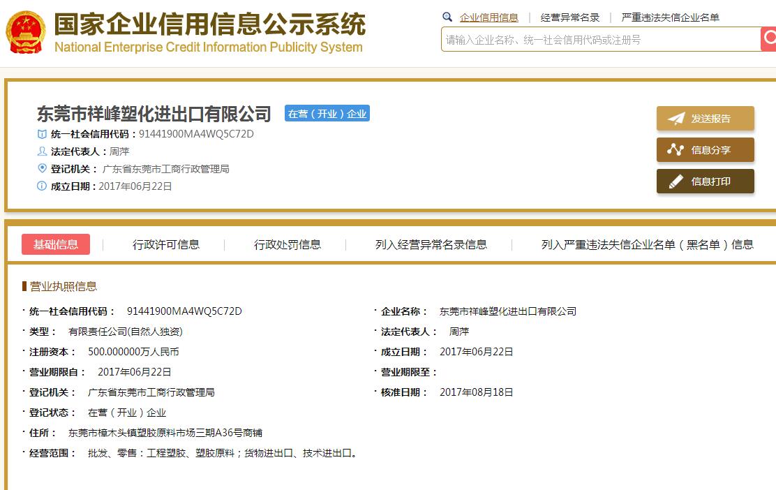 东莞市祥峰塑化进出口有限公司