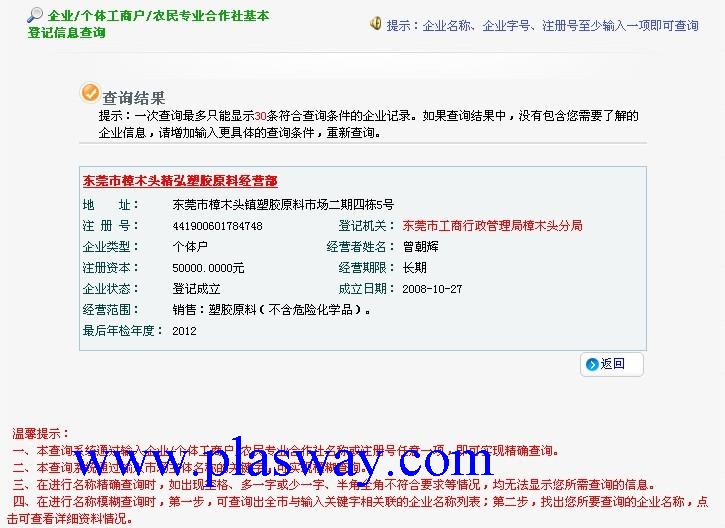 企业在主管机关网上注册信息截图