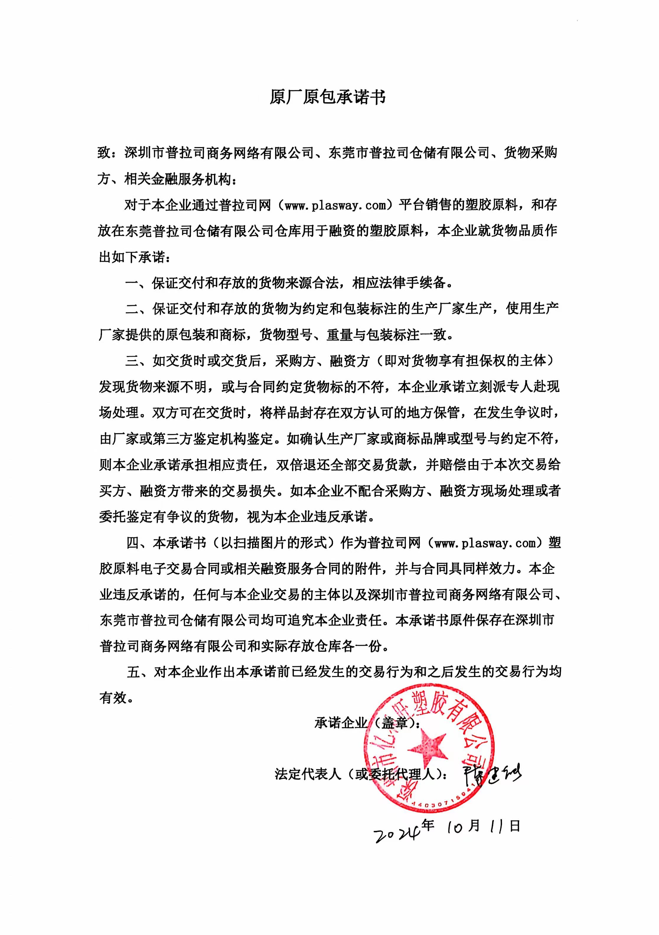 原厂原包承诺书