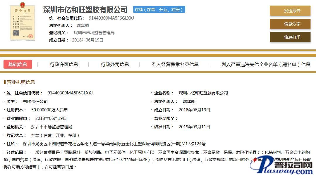 企业在主管机关网上注册信息截图
