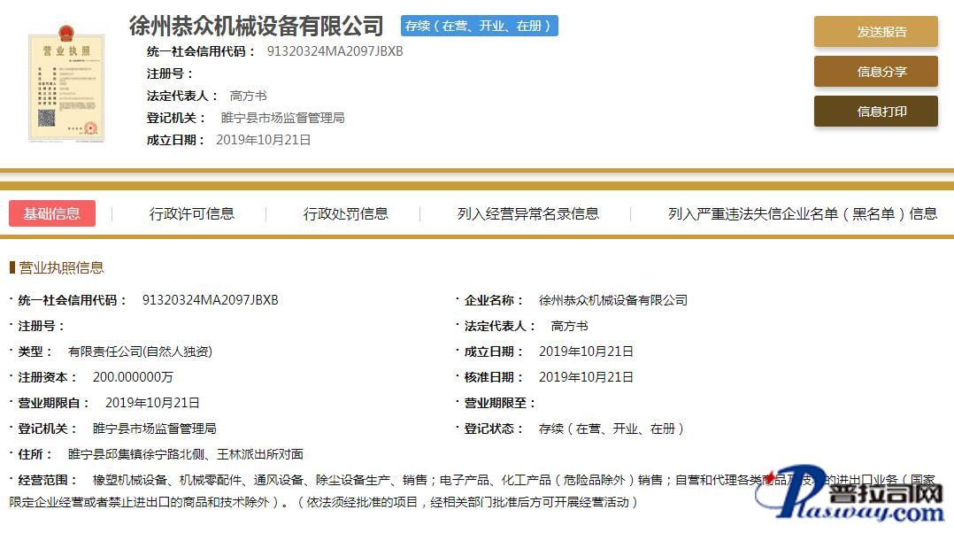 企业在主管机关网上注册信息截图
