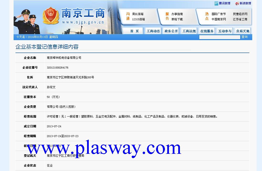 企业在主管机关网上注册信息截图