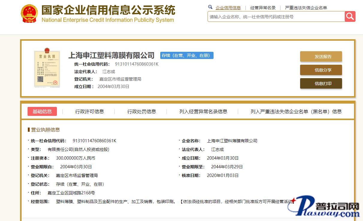 上海申江塑料薄膜有限公司