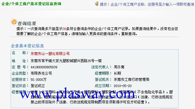 企业在主管机关网上注册信息截图
