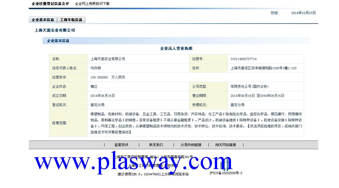 企业在主管机关网上注册信息截图
