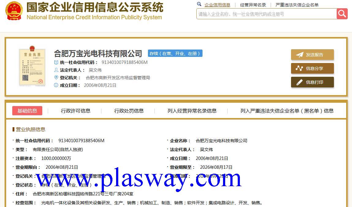 | 企业名称 | 合肥万宝光电科技有限公司 | 法人代表 | 吴文伟 | 统一社会信用代码 | 91340100791885406M |