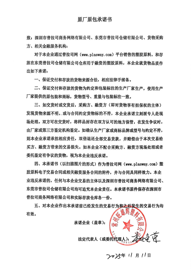 原厂原包承诺书