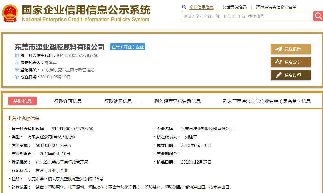 企业在主管机关网上注册信息截图