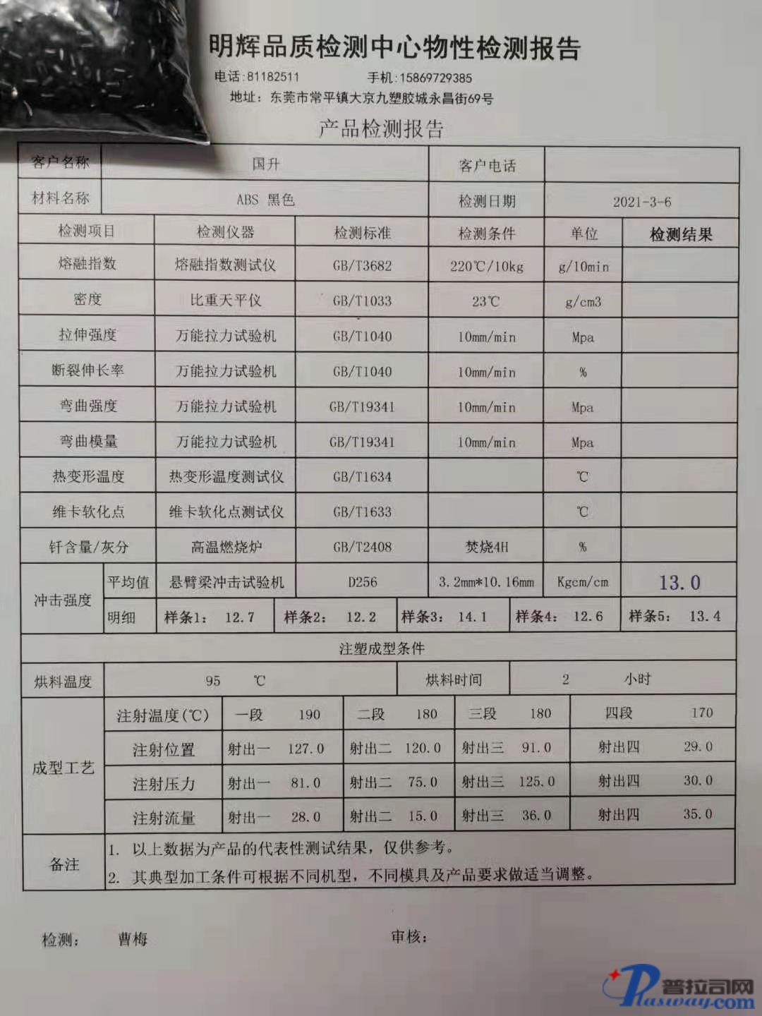 | 材料特性 | 无沙眼,无料花,物性稳定,比重轻,表面黑亮 | 应用领域 | 电器配件,充电器外壳,键盘鼠标,家具配件 |