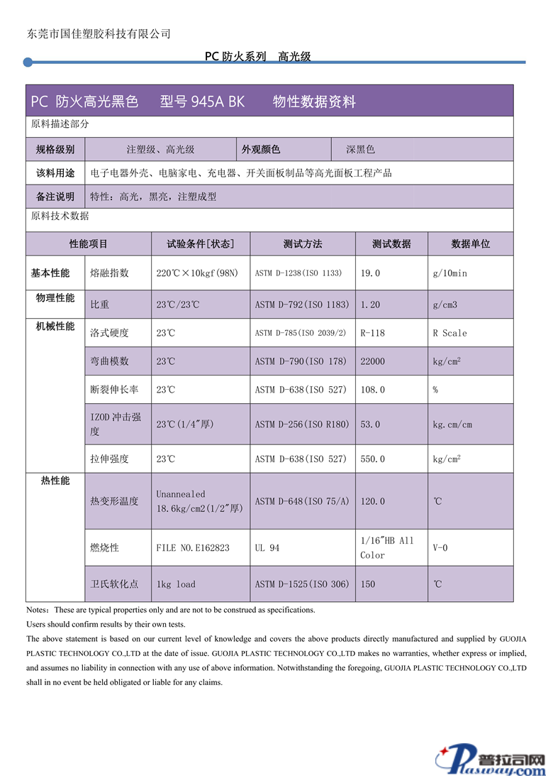 PC/东莞国佳/高光PC945A/高光深黑镜面防火PC
