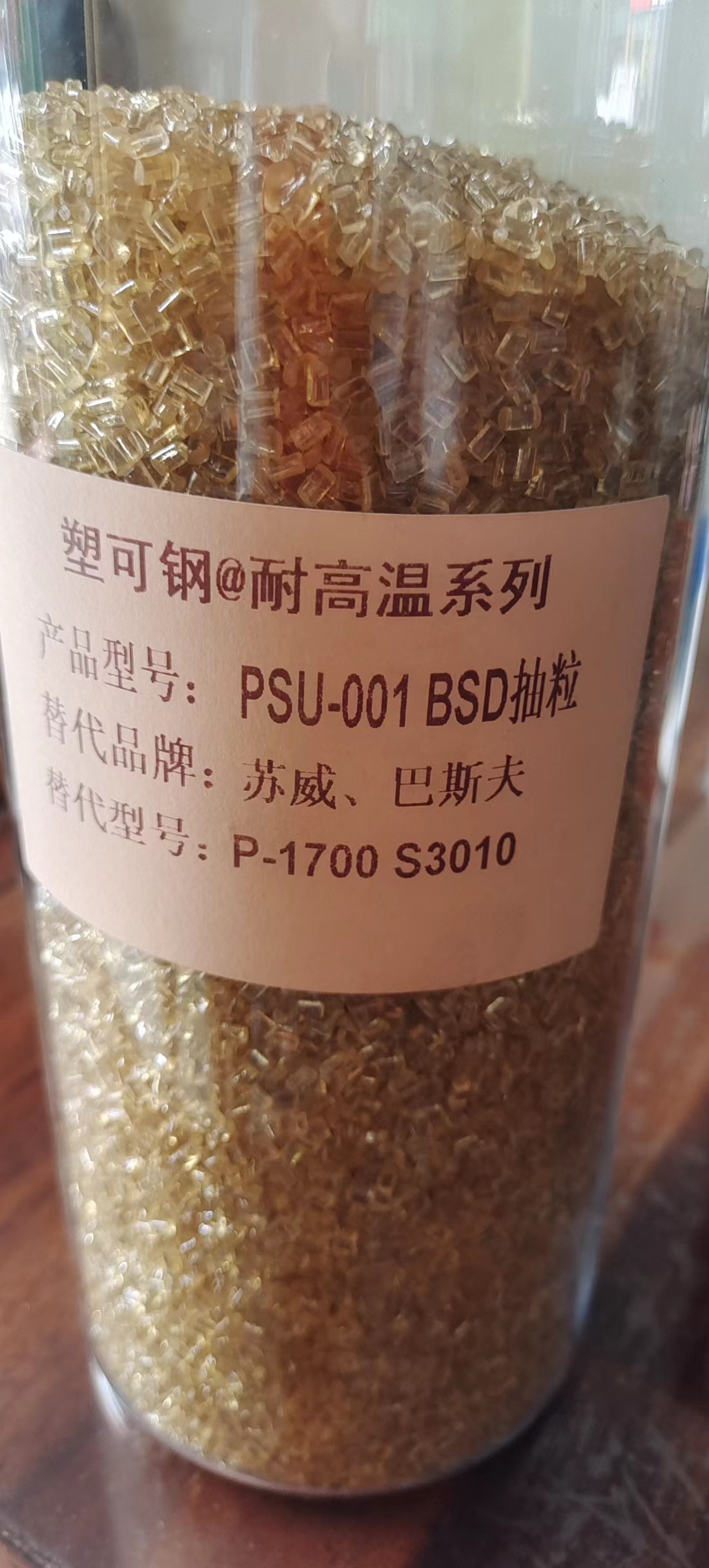 PSU结构与特点:PSU的分子主链是由异丙撑基和苯撑基连接起来的线性高分子化合物。异丙撑基为脂肪基,有一定的空间体积,可减少分子间的作用力,能赋予PSU韧性和良好的熔融加工性。异丙撑基上的二个无极性的甲基,使PSU吸湿性很小,电绝缘性能提高。但它对PSU的耐热性有一定的不利影响,与PAS和PES相比,PSU的Tg热变形温度和较高连续使用温度较低。醚键较异丙撑基*能增加分子链的柔顺性,醚键两端的苯基可绕其内旋转,它使PSU的韧性增加,熔融加工性和在溶剂中的溶解性提高,同时也使PSU的耐热性有所降低。砜基上的氧原子对称、无极性,主链上的硫原子处于较高氧化状态,它为PSU提供了优良的抗氧化能力。此外砜基与相邻的两个苯环组成了高度共轭的二苯砜结构,形成了一个十分稳固、刚硬、一体化的坚强体系,使得PSU能吸收大量热能和辐射能而不致于使主链断裂,热稳定性高,抗辐射性优,硬度大,力学性能优异。综合PSU链的结构可以看出,二苯砜基对分子链的刚性影响,过了醚键和异丙撑基对分子链的柔性影响,因此PSU分子链的刚性仍然相当大。刚性链彼此之间的缠结不易解除,使得大分子整链的运动困难,因而熔融流动时的温度较高,约为310℃,熔体粘度大,熔体流动性对温度敏感而对剪切速率不敏感。PSU制品为无定形结构,分子链刚硬、玻璃化温度高,以及熔体冷却速率快是造成PSU难以结晶的主要原因。
